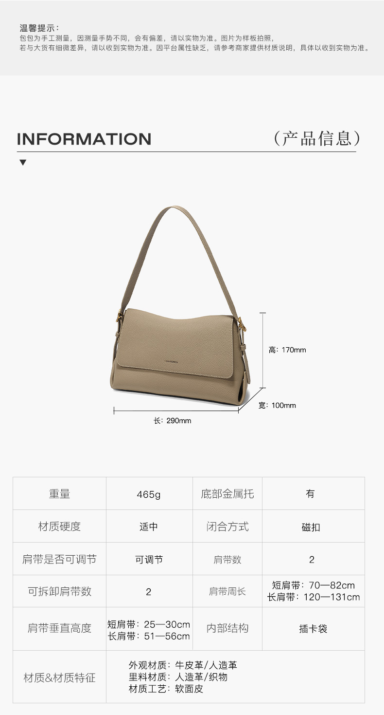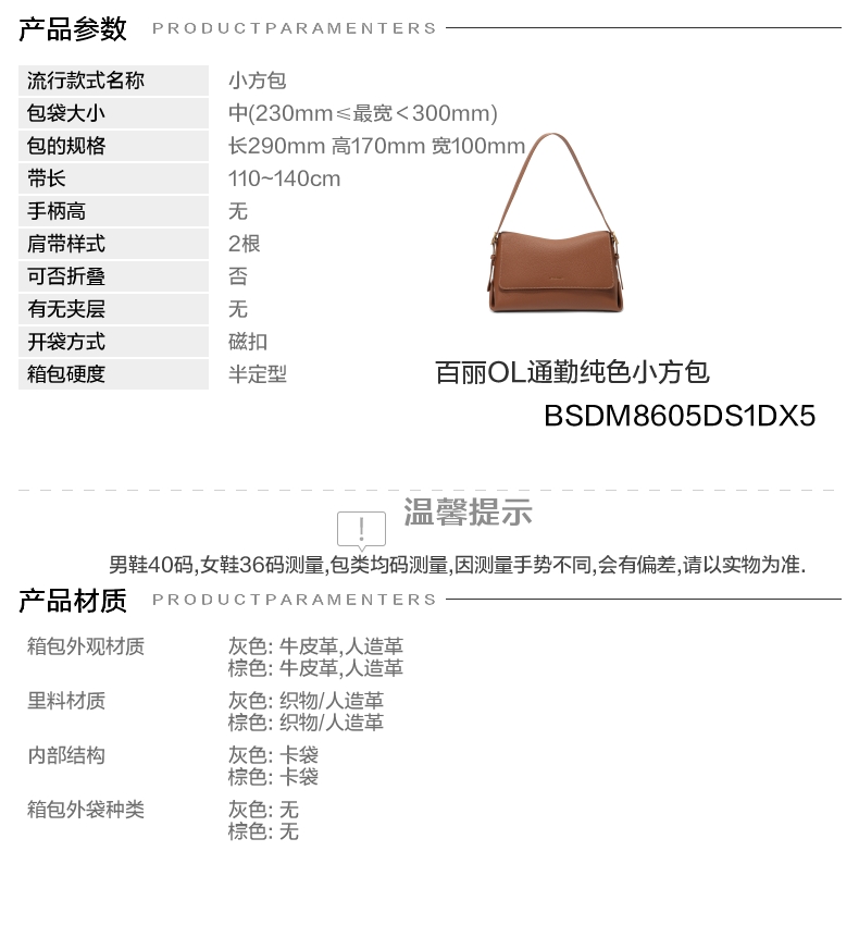 | 适用场景:通勤 | 开袋方式:磁扣 | 性别:女子 | 手柄高:无 | 里料材质:织物/人造革 |