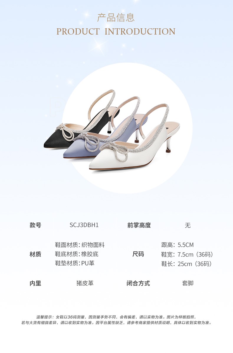 | 鞋头款式:尖头 | 鞋底材质:橡胶底 | 鞋面图案:纯色 | 鞋跟形状:细跟 | 鞋面材质:织物面料 |