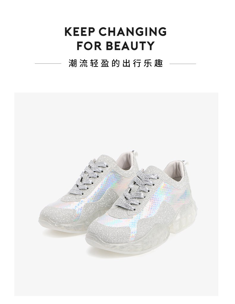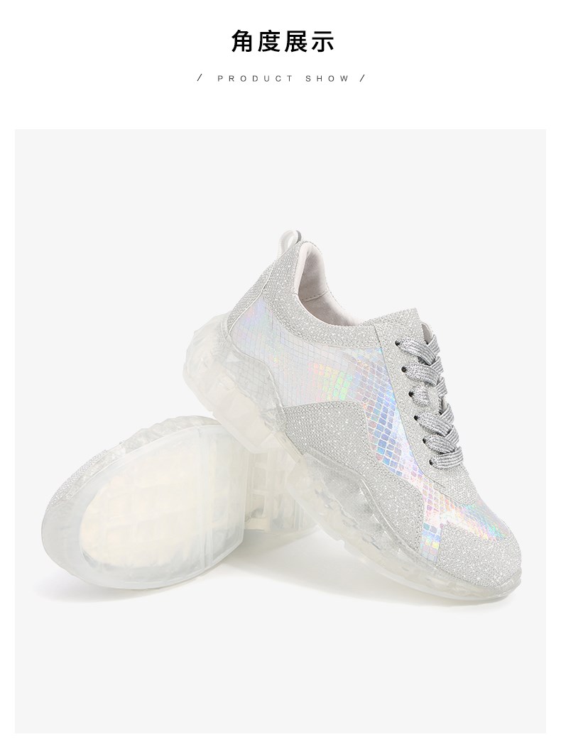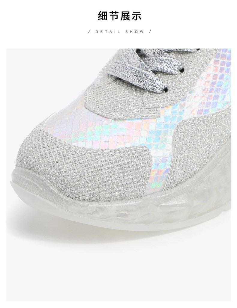 | 参考鞋长(女):25CM | 参考鞋宽(女):8.5CM | 风格:休闲 | 色系:银色 | 参考标准尺码:36码 |