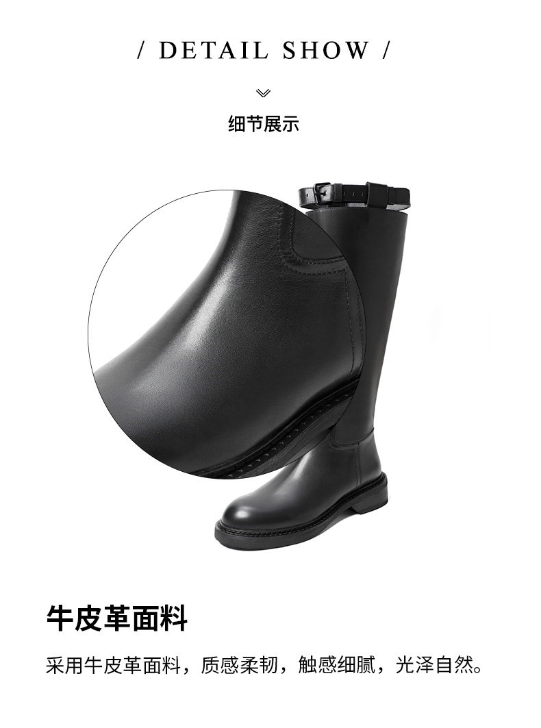 | 靴筒口围:37CM | 鞋类流行款式:骑士靴 | 鞋头款式:圆头 | 跟高范围:中跟鞋(3-5CM) | 鞋面图案:纯色 |