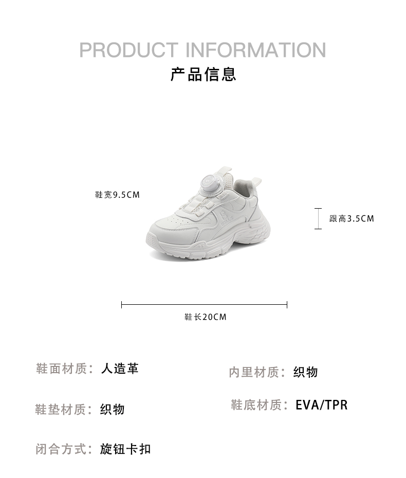 | 鞋码/内长:30码/20cm | 闭合方式:系带 | 是否禁航:非禁航 | 风格:休闲 | 色系:白色 |