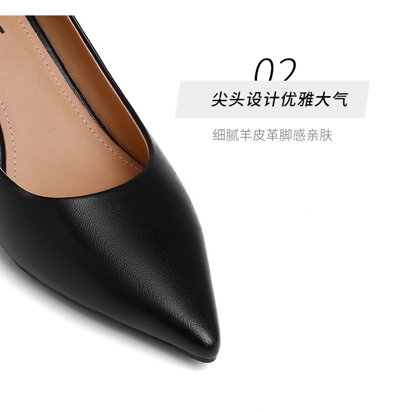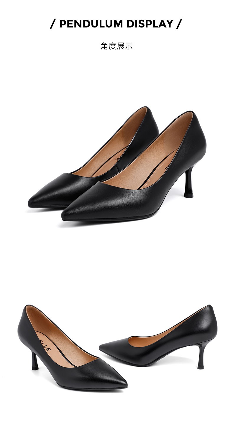 | 鞋头款式:尖头 | 鞋底材质:橡胶底 | 鞋面图案:纯色 | 内增高:无 | 鞋跟形状:细跟 |
