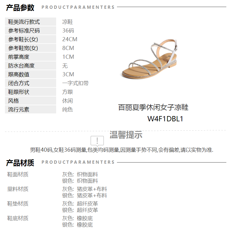 | 前掌高度:1CM | 皮质特征:织物 | 鞋类流行款式:凉鞋 | 防水台高度:无 |