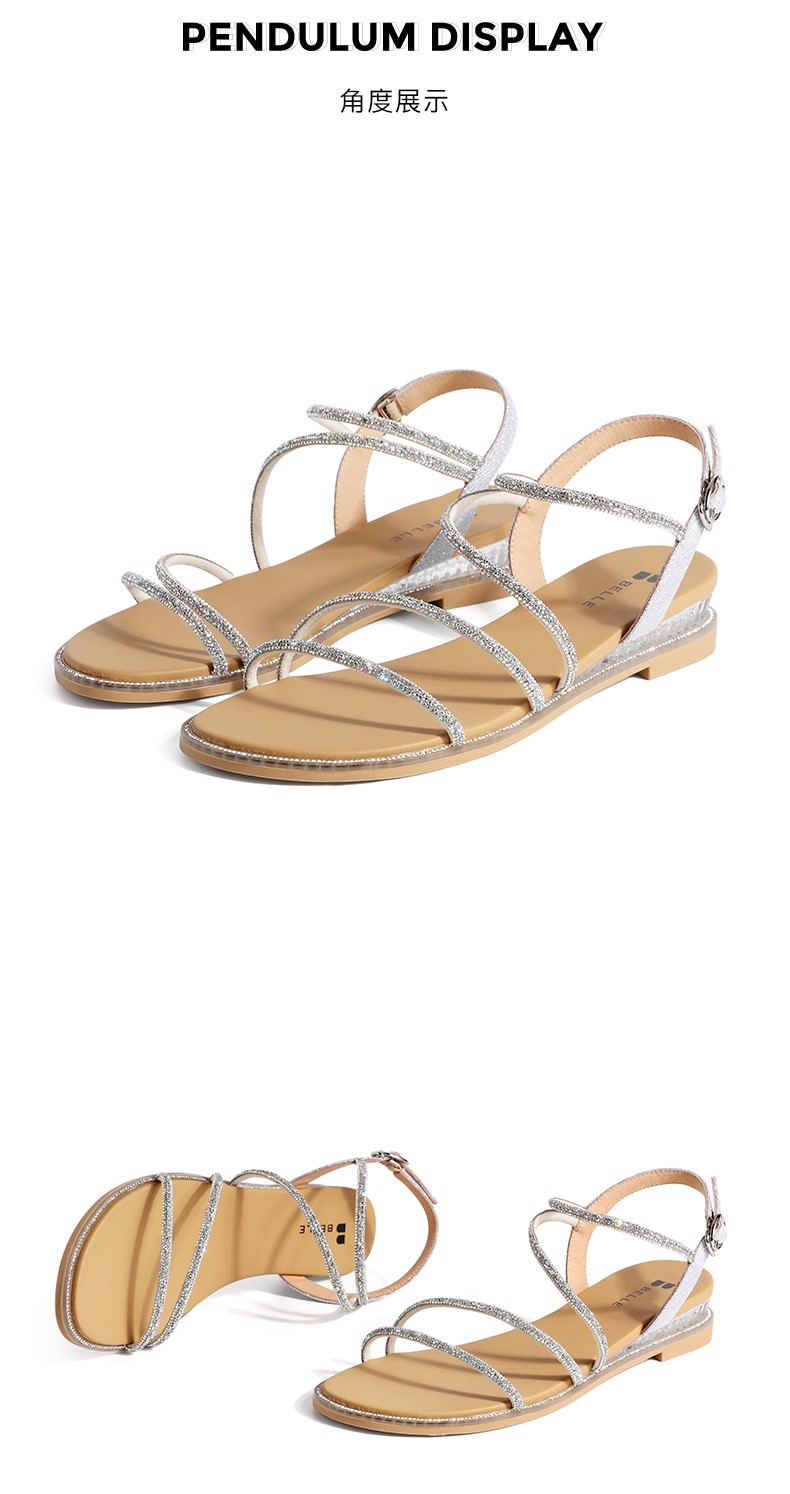| 风格:休闲 | 色系:银色 | 跟高数值:3CM | 配跟:无 | 制鞋工艺:皮凉鞋 |
