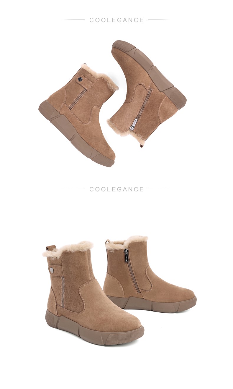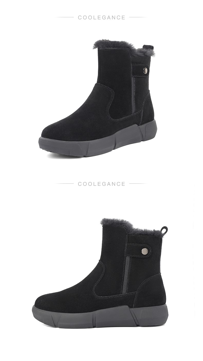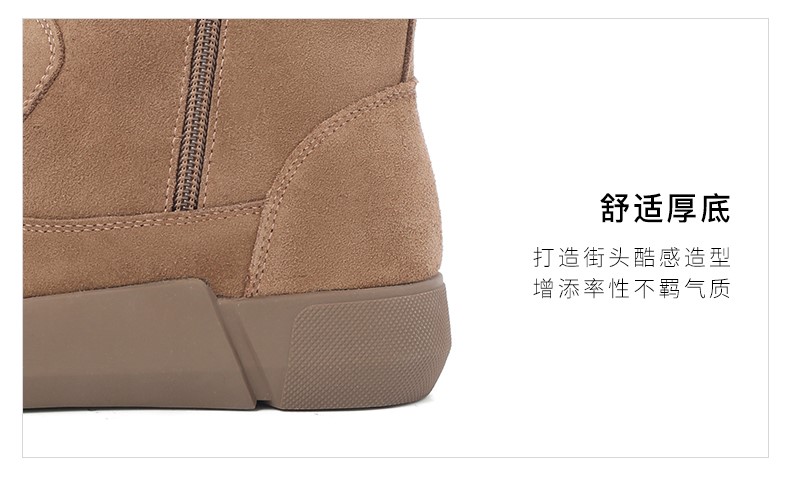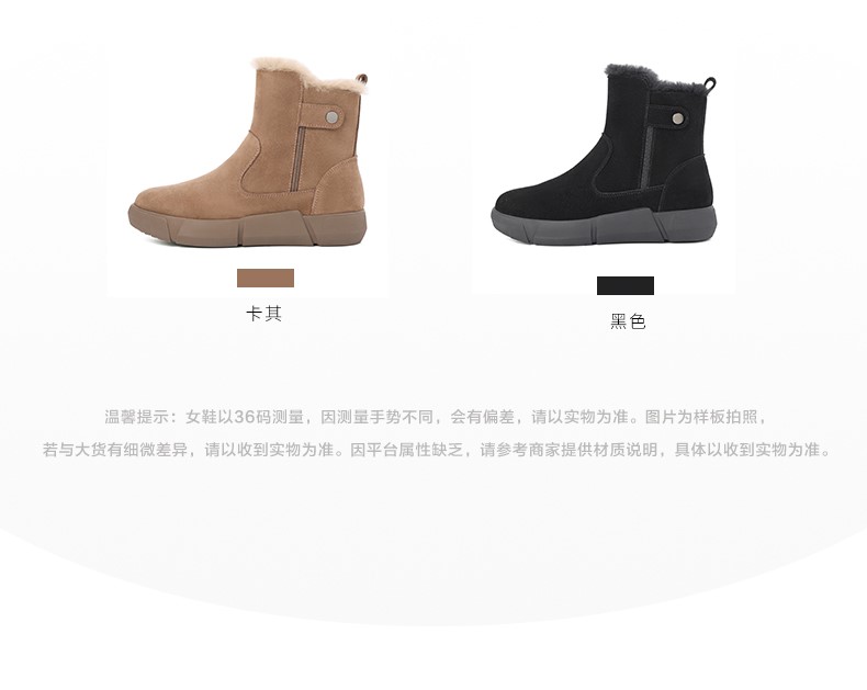 | 鞋底材质:橡胶底 | 靴筒内里材质:人造长毛绒 | 内增高:无 | 鞋面材质:牛剖层皮革 | 闭合方式:侧拉链 |