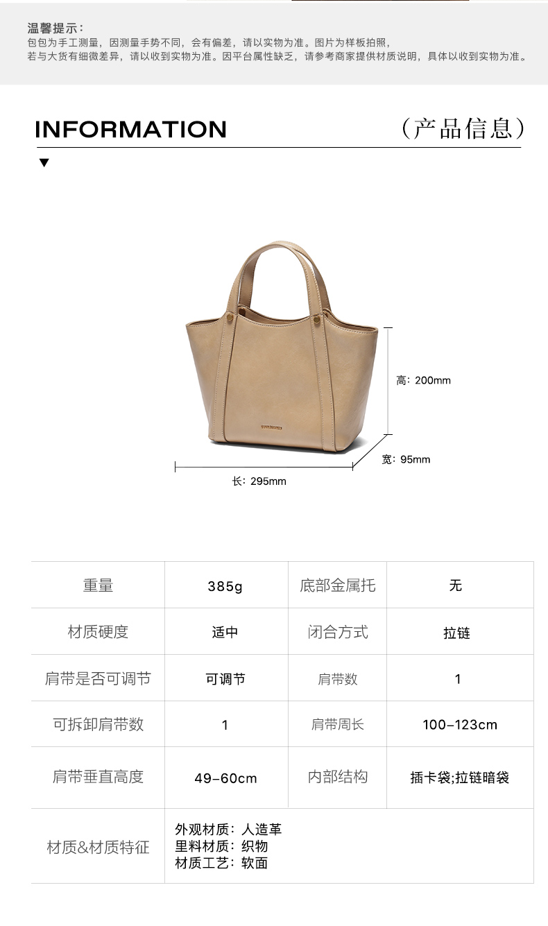 | 手柄:有 | 可否折叠:否 | 闭合方式:拉链 | 是否防水:否 | 上市时间:2025年冬季 |