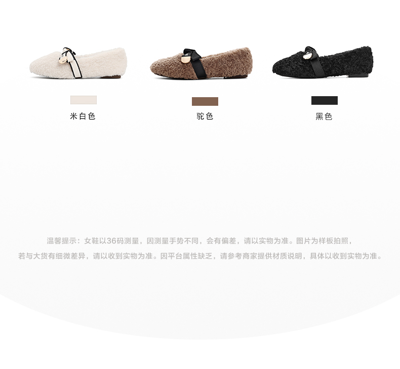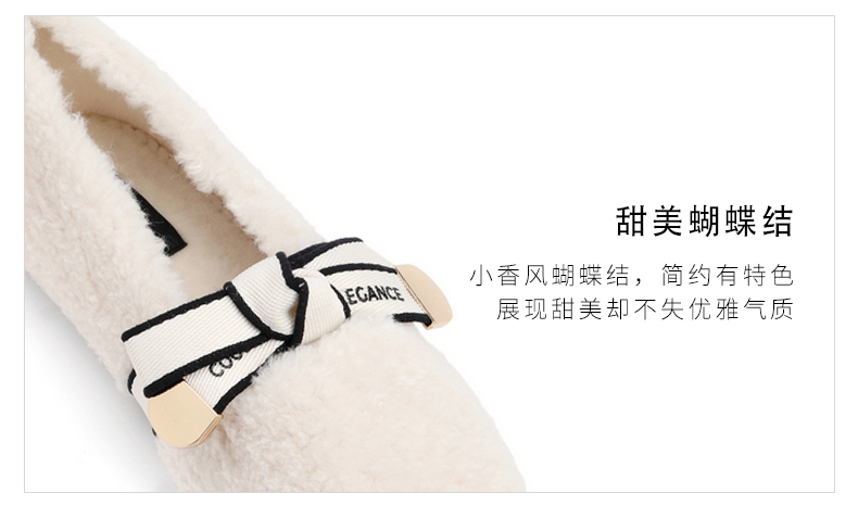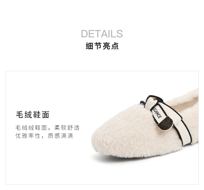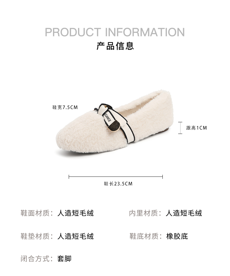 | 色系:米色 | 跟高数值:1CM | 性别:女子 | 里料材质:人造短毛绒 | 制鞋工艺:车线胶粘 |