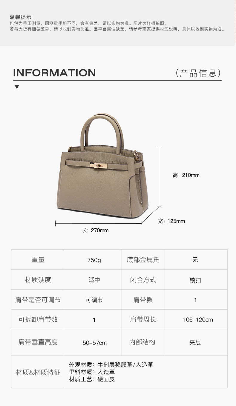 | 适用场景:通勤 | 开袋方式:锁扣 | 性别:女 | 手柄高:10~15cm | 里料材质:人造革 |