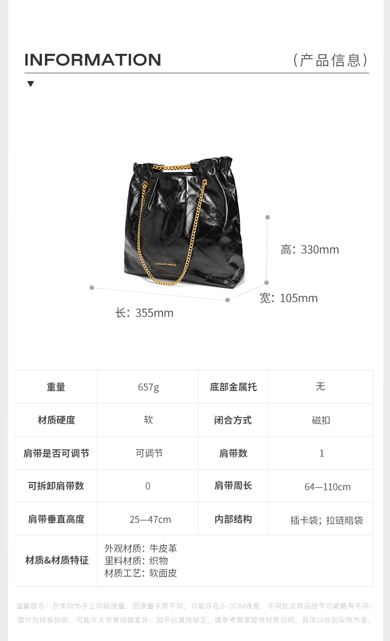 | 材质工艺:软面皮 | 渠道划分:电商专销 | 皮质特征:软面皮 | 箱包外观材质:牛皮革 | 箱包硬度:半定型 |