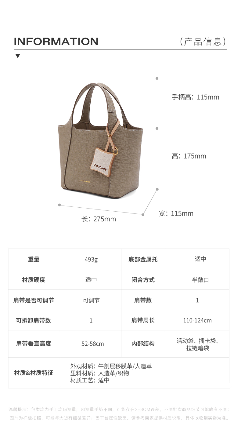 | 手柄:有 | 可否折叠:否 | 闭合方式:敞口 | 是否防水:否 | 上市时间:2024年秋季 |