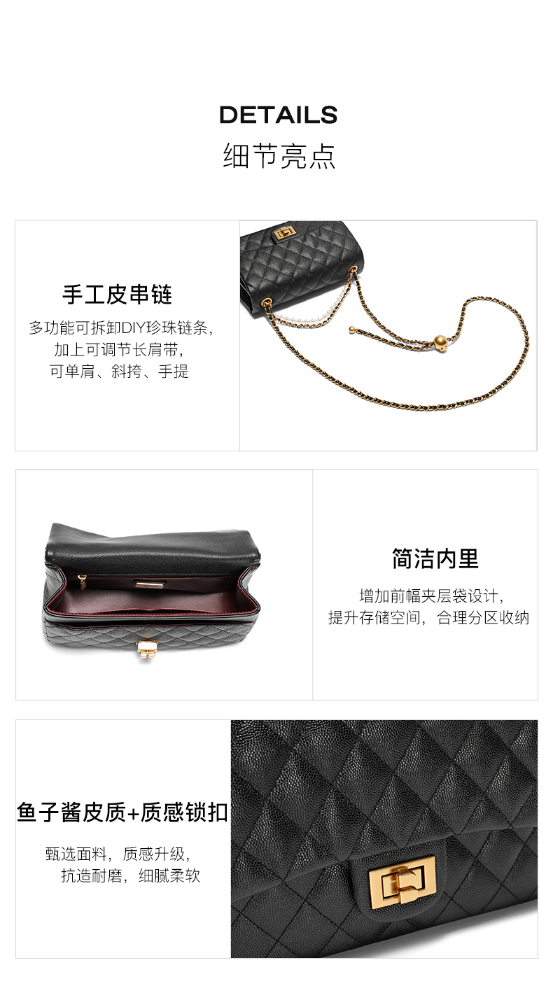 | 可否折叠:否 | 闭合方式:锁扣 | 所在区域:省仓 | 是否防水:否 | 风格分类:绗缝包 |