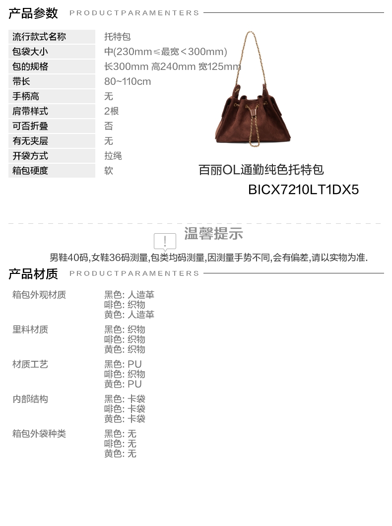 | 色系:咖啡色 | 适用场景:通勤 | 开袋方式:拉绳 | 性别:女子 | 是否防水:否 |