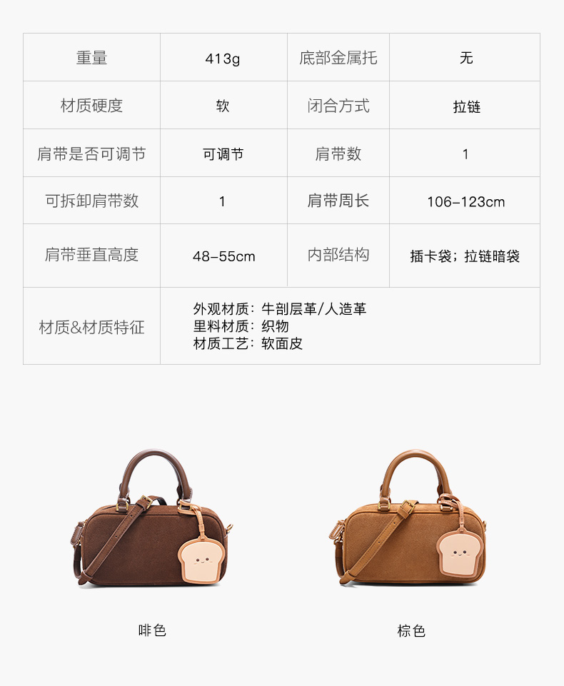 | 款式季节:冬季 | 材质工艺:软面皮 | 皮质特征:软面皮 | 箱包硬度:半定型 | 箱包外观材质:人造革牛剖层移膜革 |