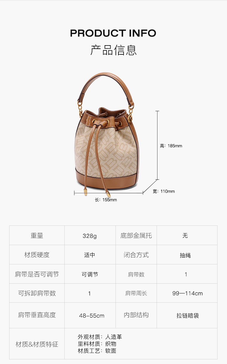 | 适用场景:休闲 | 开袋方式:拉绳 | 性别:女 | 手柄高:小于10cm | 里料材质:织物 |