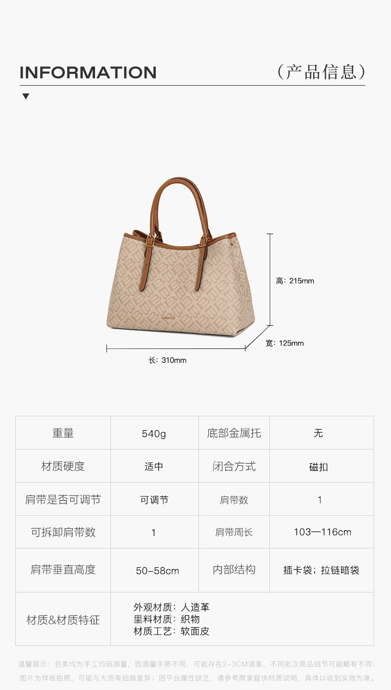 | 肩带样式:双根 | 手柄:无 | 流行元素:车缝线 | 可否折叠:否 | 包的规格:W310*H215*D125mm |