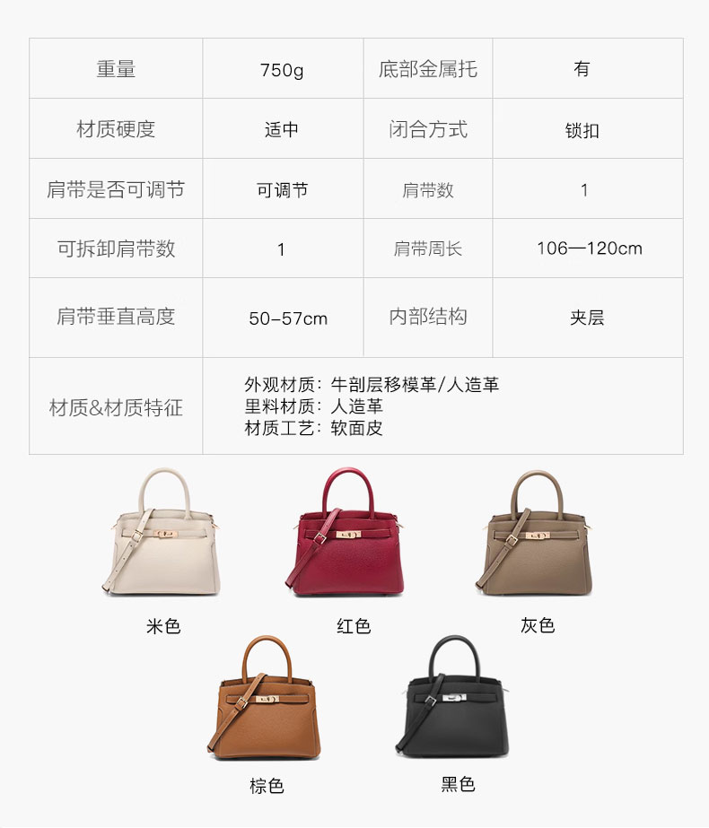 | 适用场景:通勤 | 开袋方式:锁扣 | 性别:女子 | 是否防水:否 | 里料材质:人造革 |