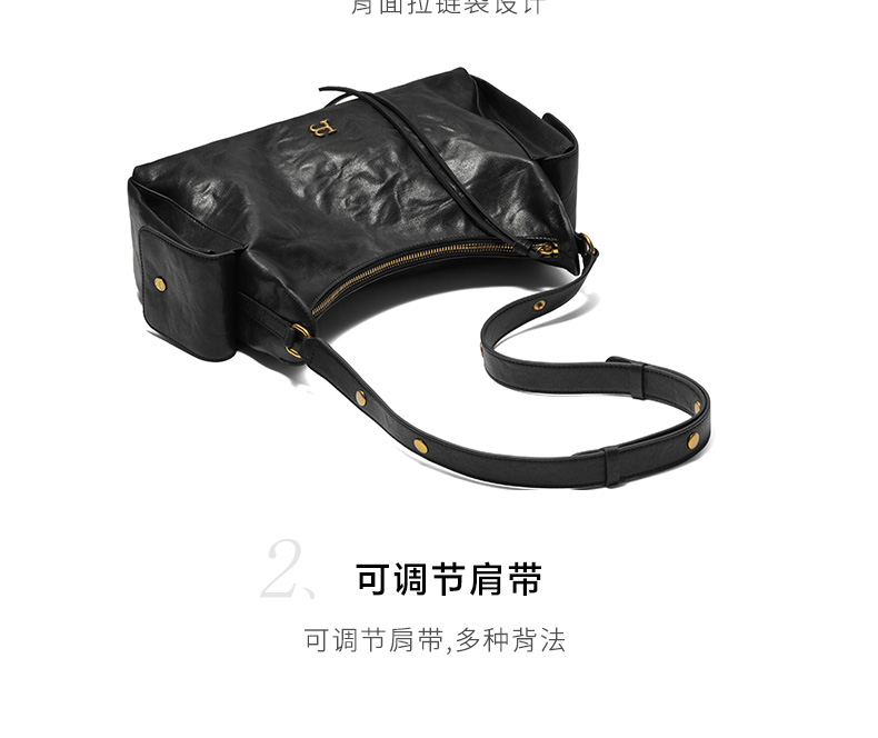 | 内部结构:拉链暗袋/卡位 | 闭合方式:拉链 | 背带方式:单肩/斜挎 | 风格:休闲 | 色系:黑色 |