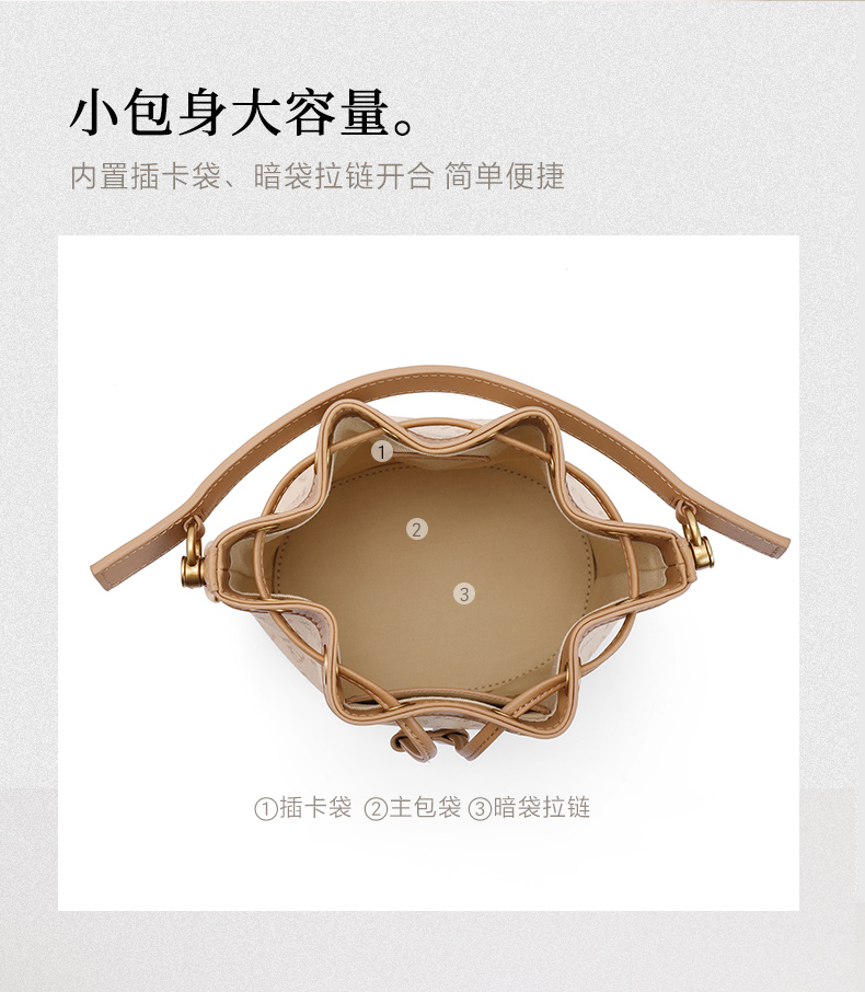 | 适用场景:休闲 | 开袋方式:拉绳 | 性别:女 | 手柄高:小于10cm | 里料材质:织物 |