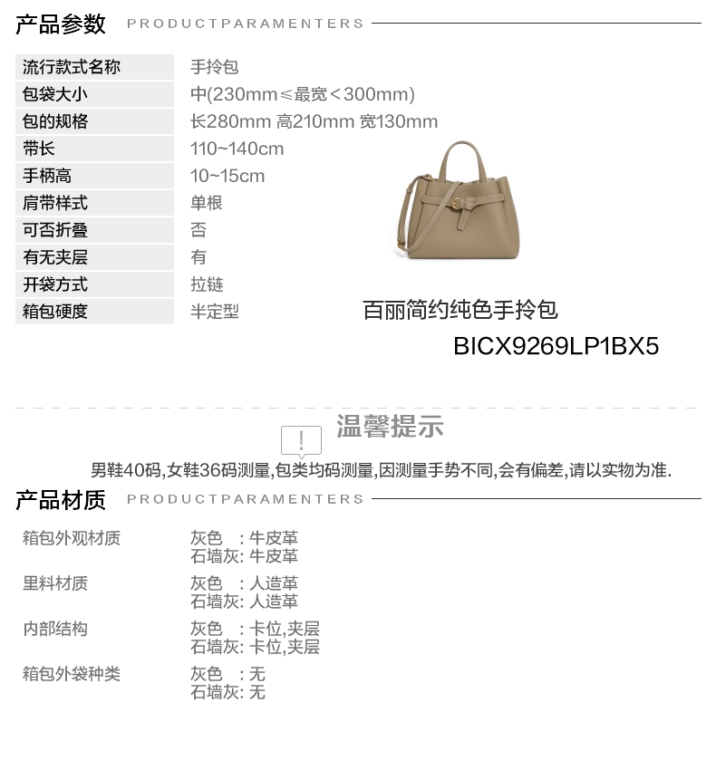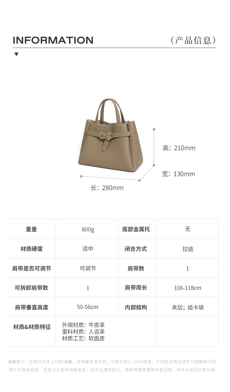 | 适用场景:通勤 | 开袋方式:拉链 | 性别:女 | 手柄高:10~15cm | 里料材质:人造革 |