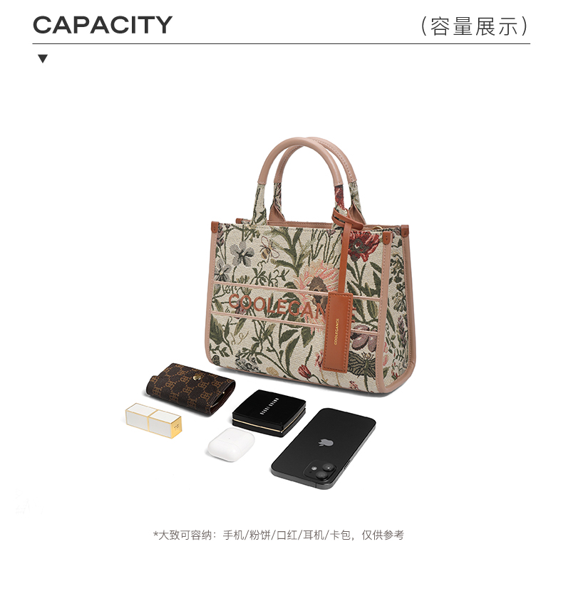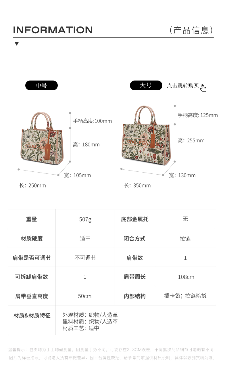 | 适用场景:通勤 | 流行款式名称:托特包 | 开袋方式:拉链 | 性别:女 | 里料材质:织物/人造革 |