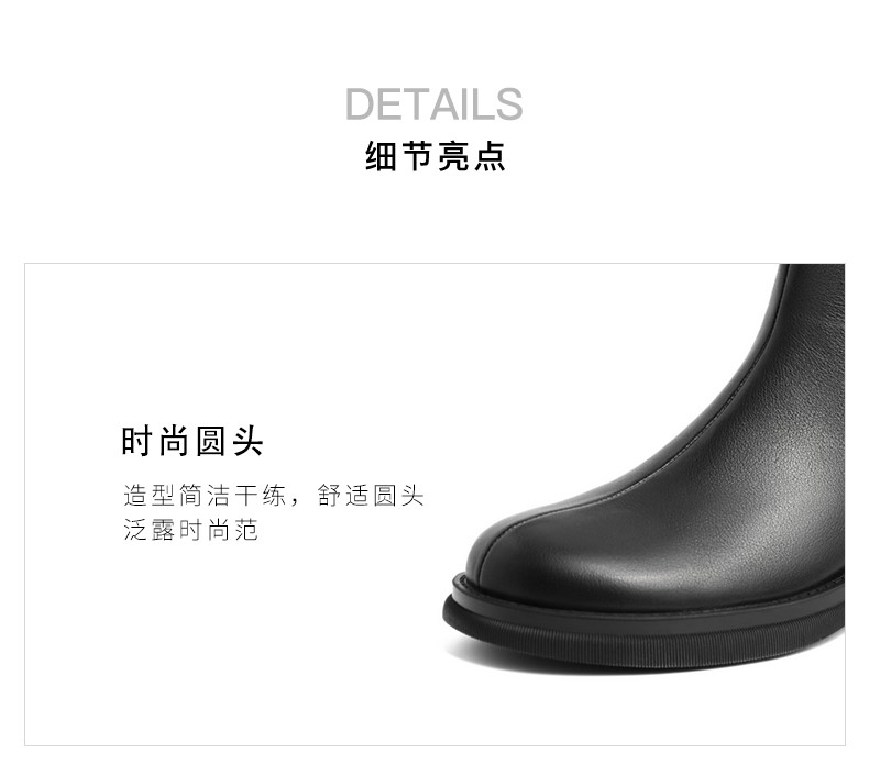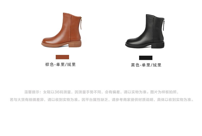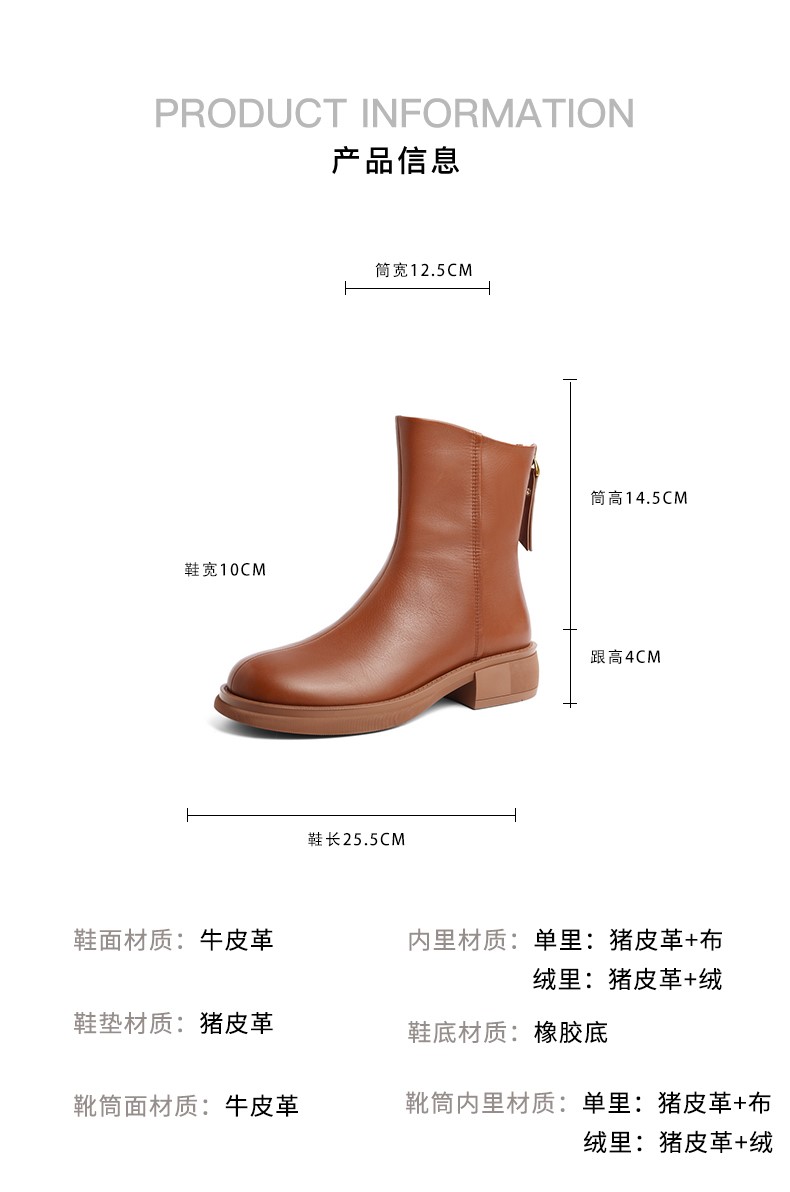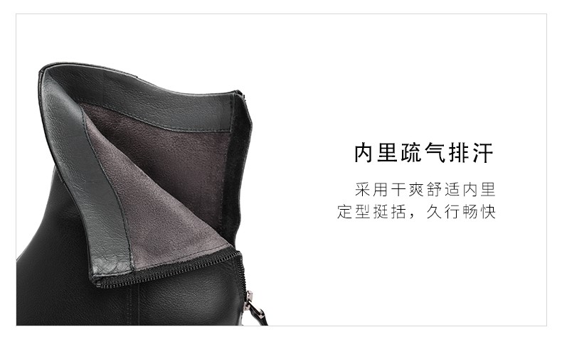 | 鞋底材质:橡胶底 | 靴筒内里材质:猪皮革布料 | 内增高:无 | 鞋面材质:牛皮革 | 闭合方式:后拉链 |