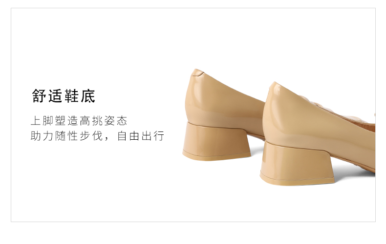 | 色系:杏色 | 跟高数值:4CM | 性别:女子 | 里料材质:织物猪皮革 | 制鞋工艺:车线胶粘 |