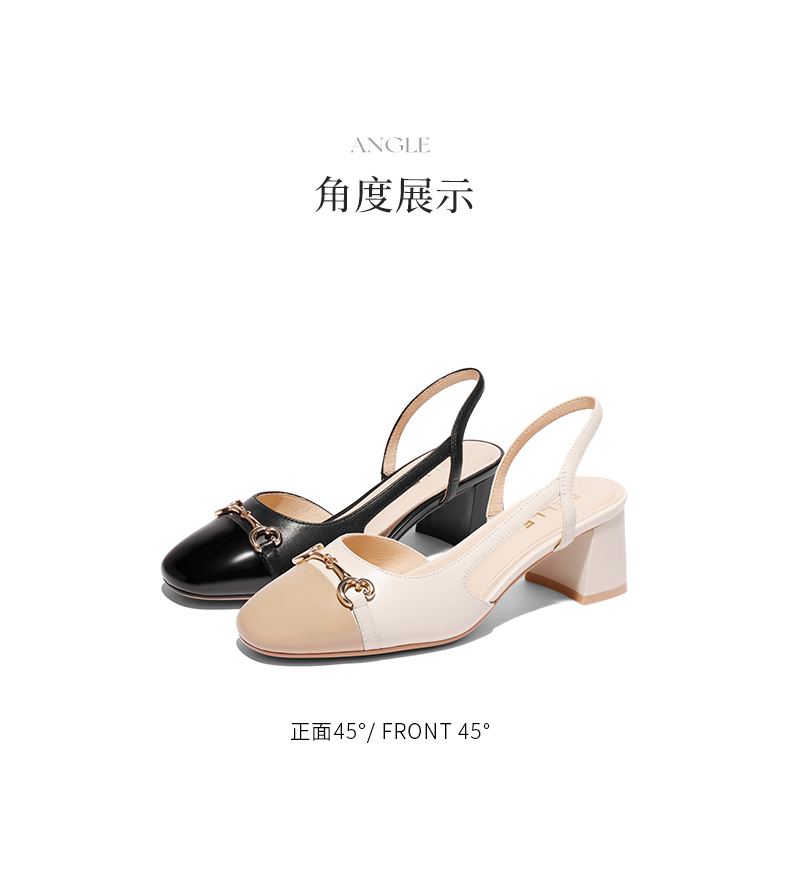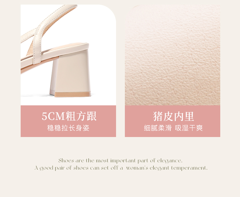 | 鞋类流行款式:凉鞋 | 鞋头款式:方头 | 执行标准:皮凉鞋GB/T22756-2017 | 跟高范围:中跟鞋(3-5CM) | 鞋面图案:拼色 |