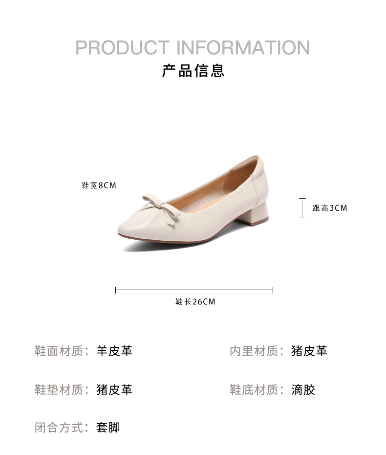 | 功能科技:耐磨 | 鞋底材质:滴胶 | 内增高:无 | 鞋面材质:羊皮革 | 适用场合:办公室经典上班约会 |