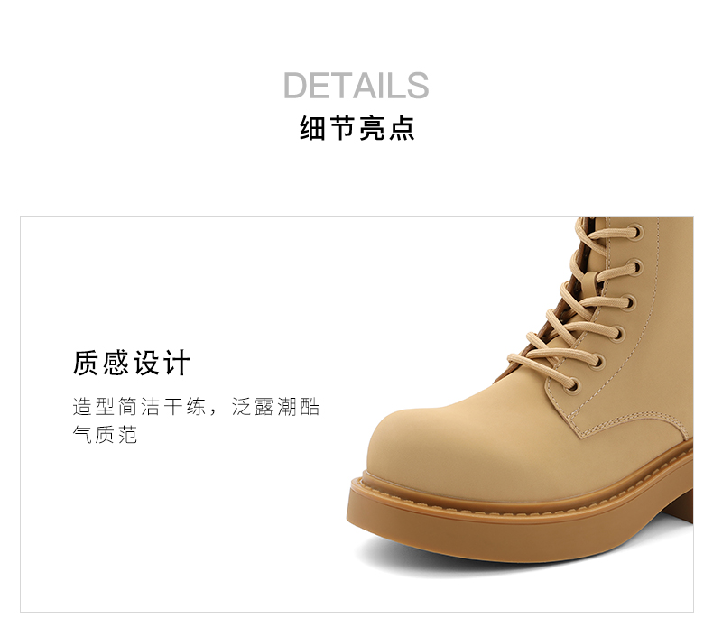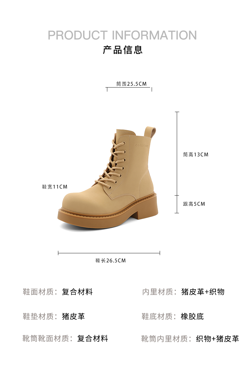 | 配跟:无 | 靴筒口围:25.5CM | 上市时间:2023年冬季 | 鞋类流行款式:马丁靴 | 鞋头款式:圆头 |