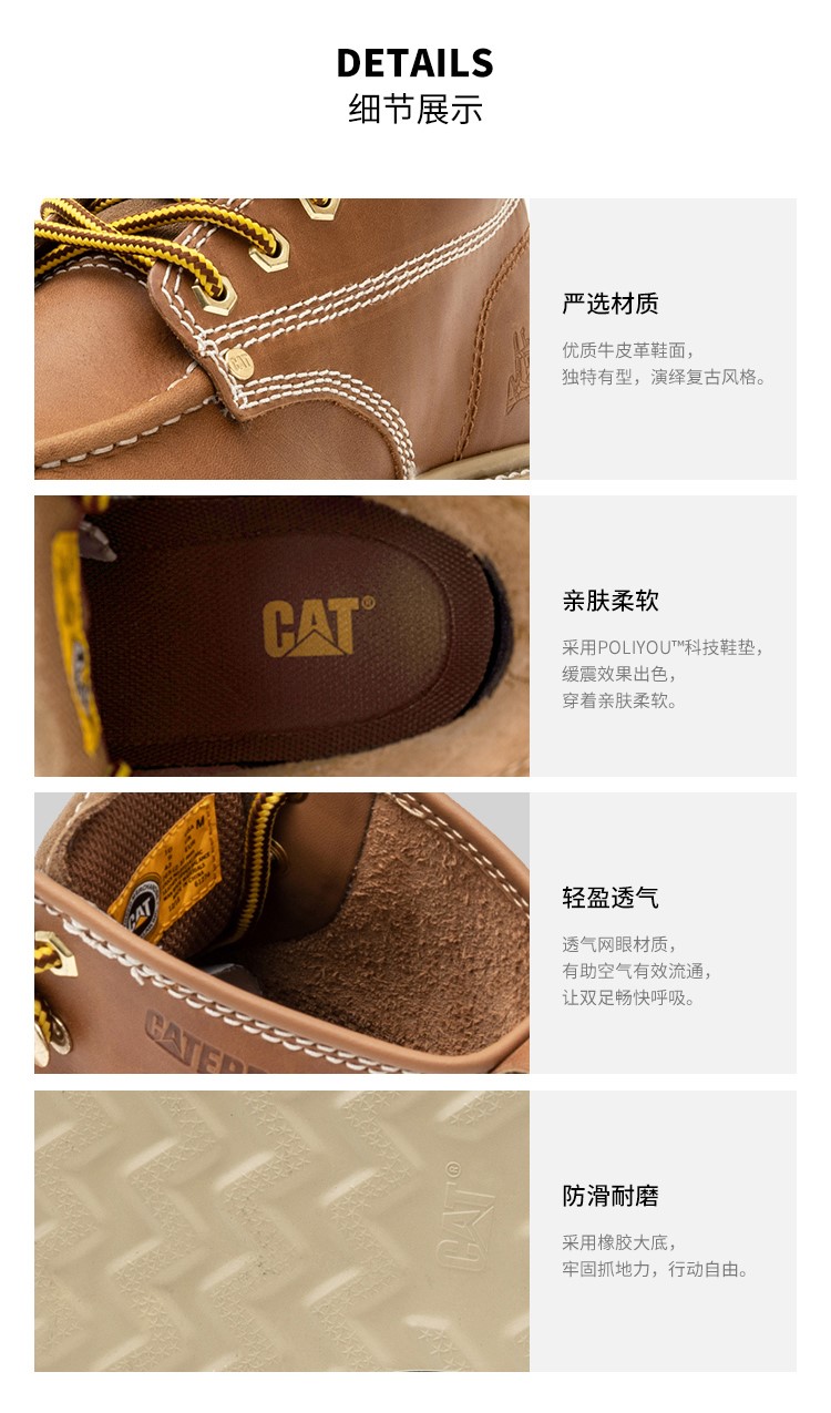 CAT(卡特),品牌源自于美国密歇根Caterpillar®公司,是一直致力于基础设施的机械制造商,已成为坚毅、硬朗的同义词。Cat®鞋,一个有Caterpillar®工作机器DNA的发明,充斥着个性、硬朗、真实、专注、活力的品牌理念,因潮流趋势,先后推出了两大风格类型的产品,令时尚与科技再次融合与升华。目前Cat®(卡特)已开设多家门店,成为消费者热爱和信赖的品牌之一。