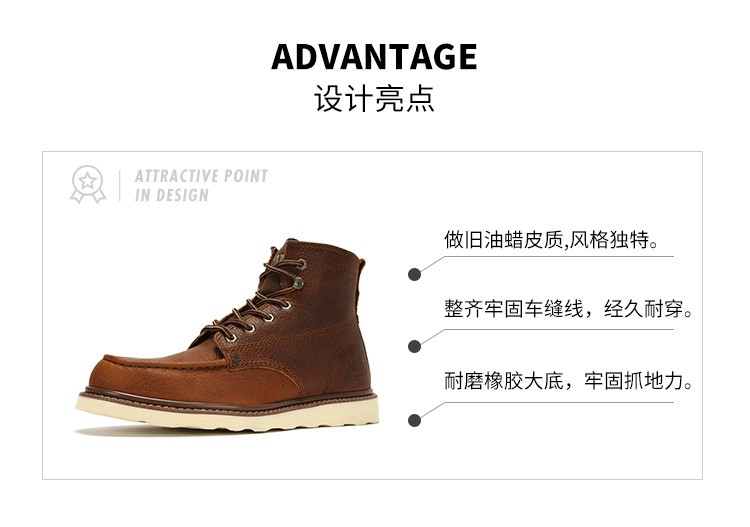 | 靴子品名:工装靴 | 皮质特征:磨砂皮 | 鞋类流行款式:低靴 | 主要功能:其它 |