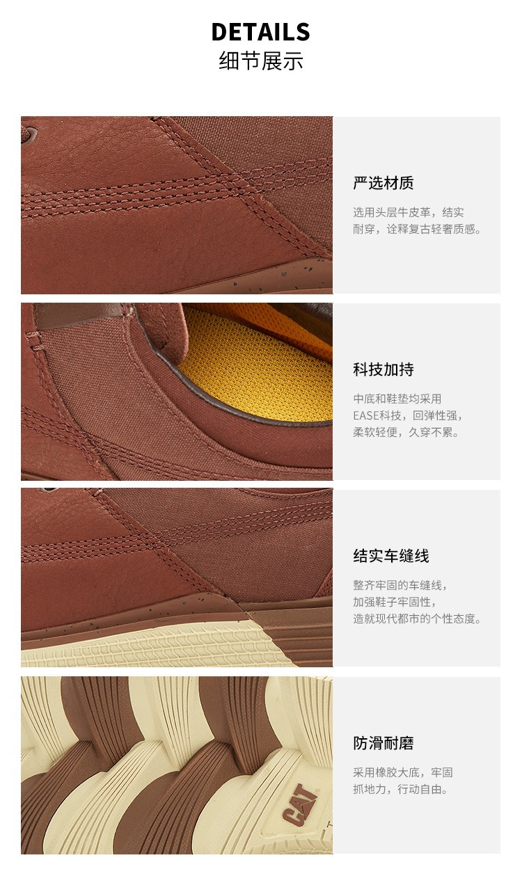 CAT(卡特),品牌源自于美国密歇根Caterpillar®公司,是一直致力于基础设施的机械制造商,已成为坚毅、硬朗的同义词。Cat®鞋,一个有Caterpillar®工作机器DNA的发明,充斥着个性、硬朗、真实、专注、活力的品牌理念,因潮流趋势,先后推出了两大风格类型的产品,令时尚与科技再次融合与升华。目前Cat®(卡特)已开设多家门店,成为消费者热爱和信赖的品牌之一。