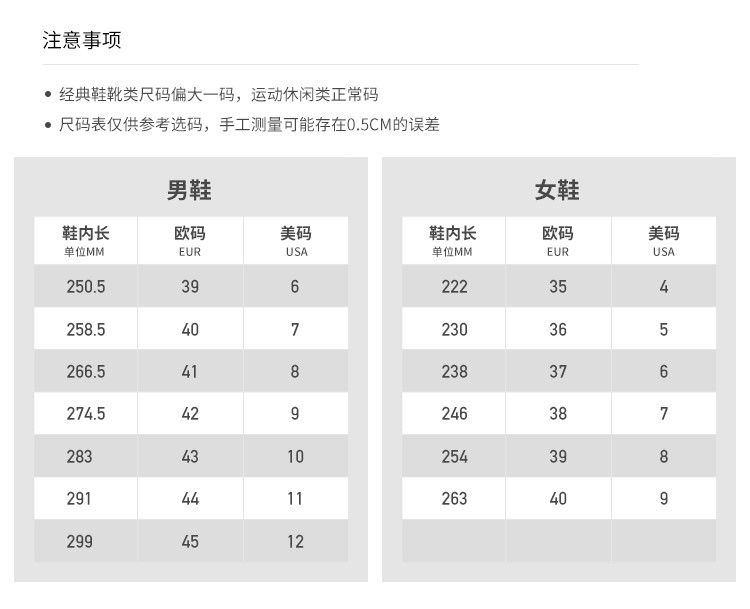 | 欧码(EUR) | 40 | 41 | 42 | 43 | 44 |