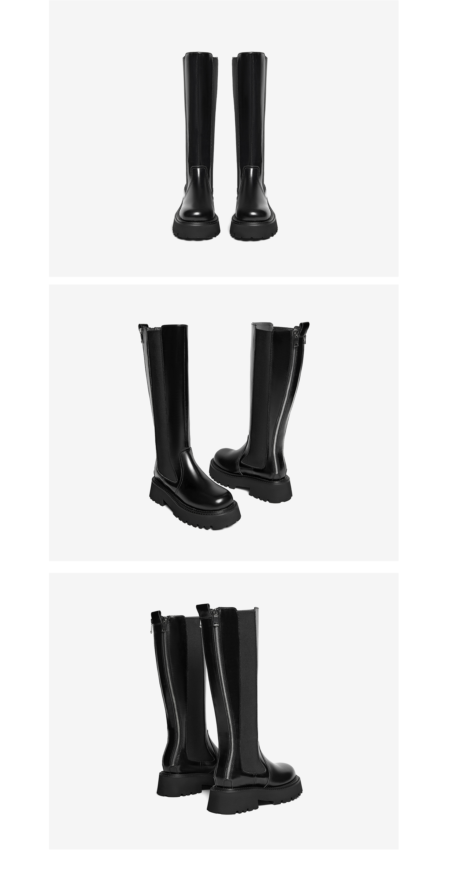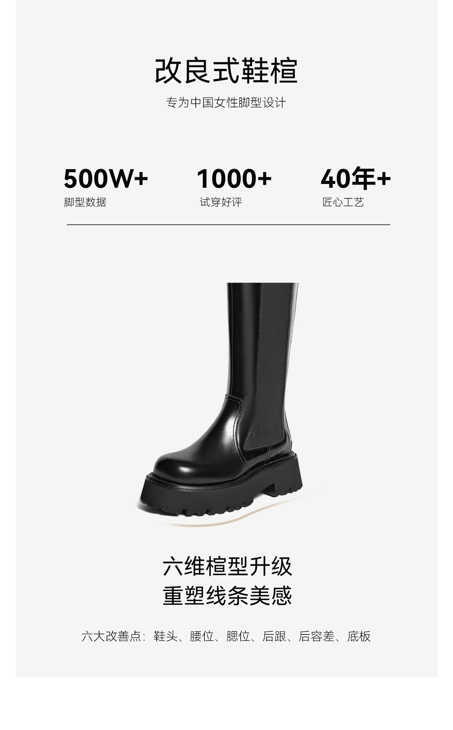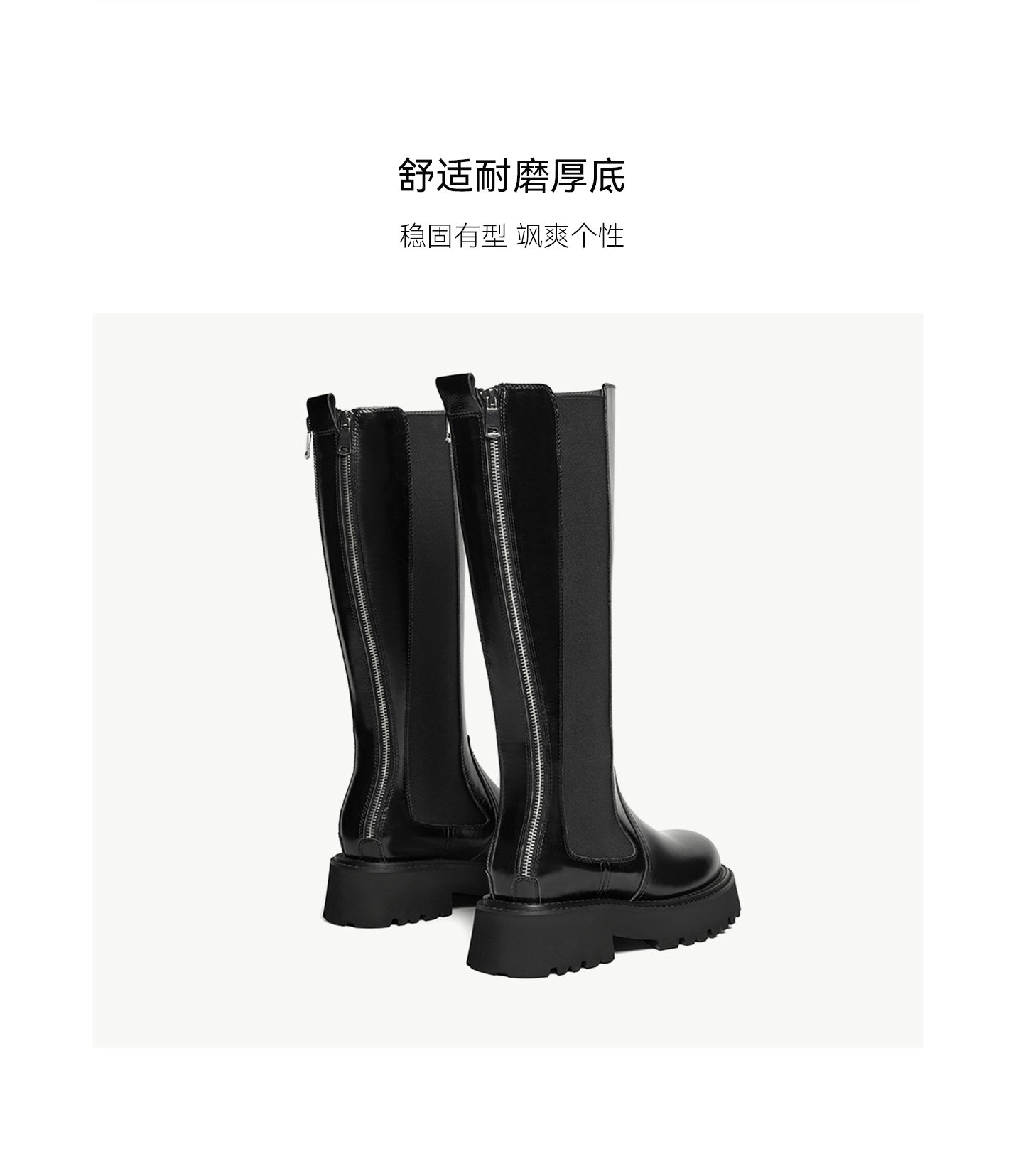 | 鞋底材质:橡胶发泡底 | 靴筒内里材质:猪皮革 | 内增高:无 | 鞋面材质:牛皮革 | 闭合方式:后拉链 |