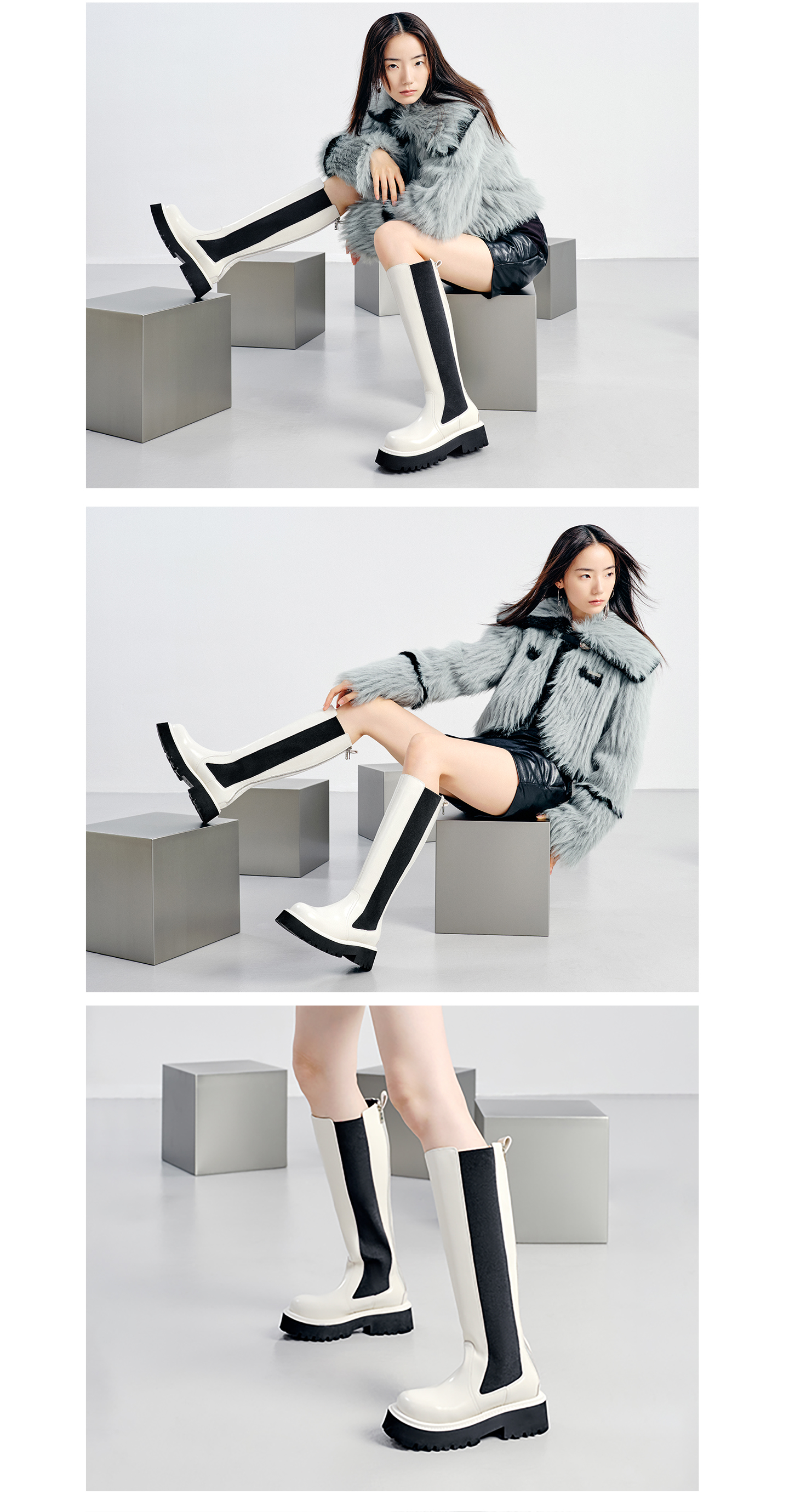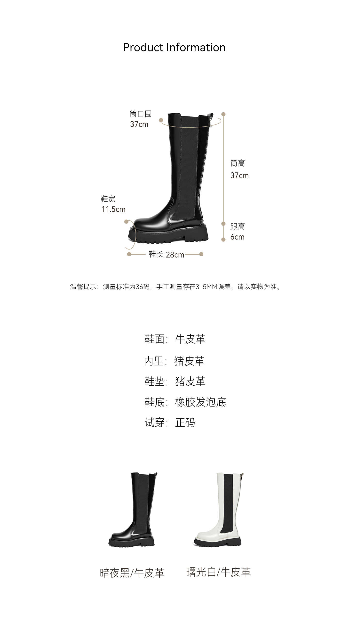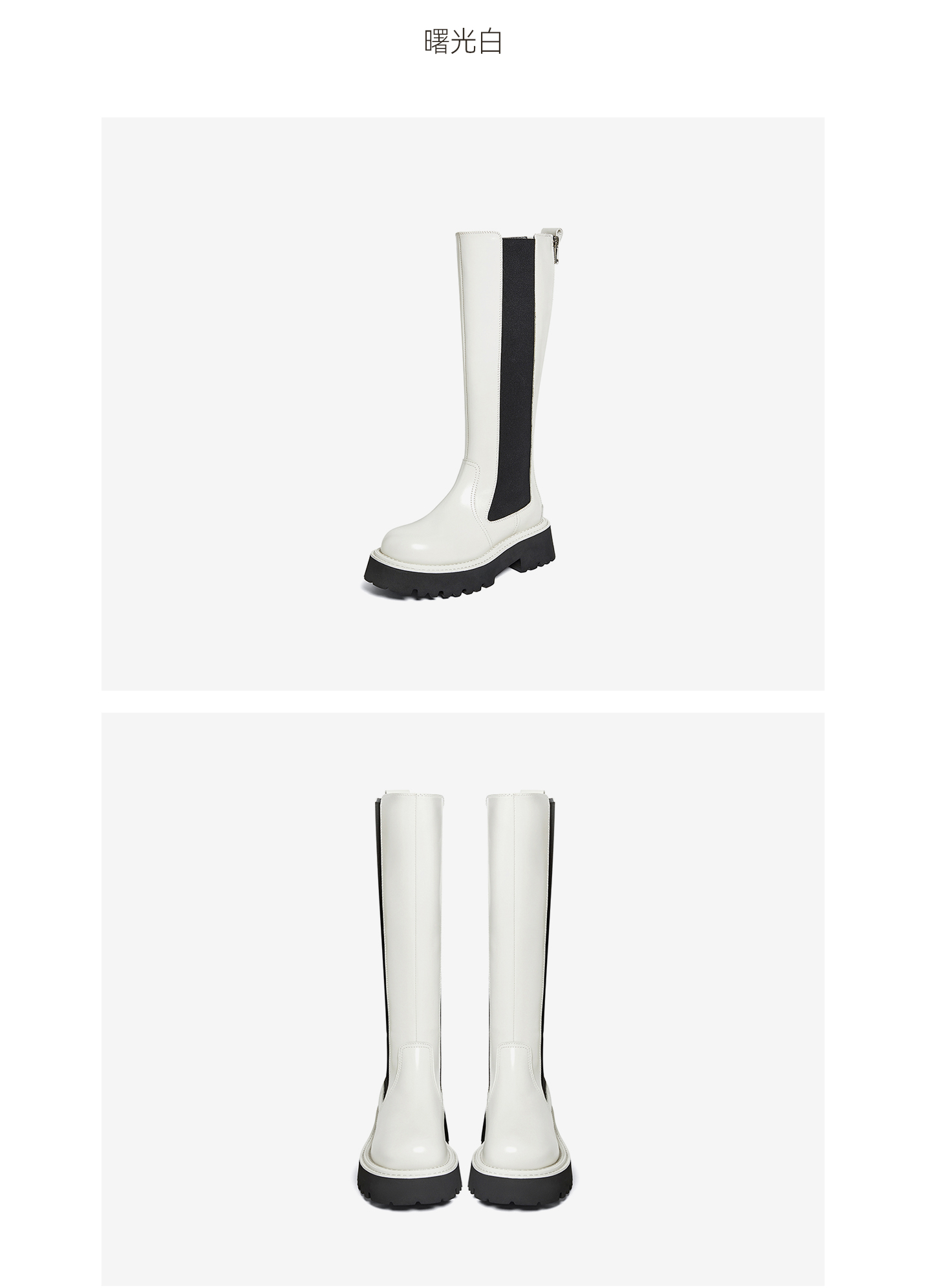 | 风格:简约 | 鞋面内里材质:猪皮革 | 色系:白色 | 跟高数值:6CM | 筒高数值:37CM |
