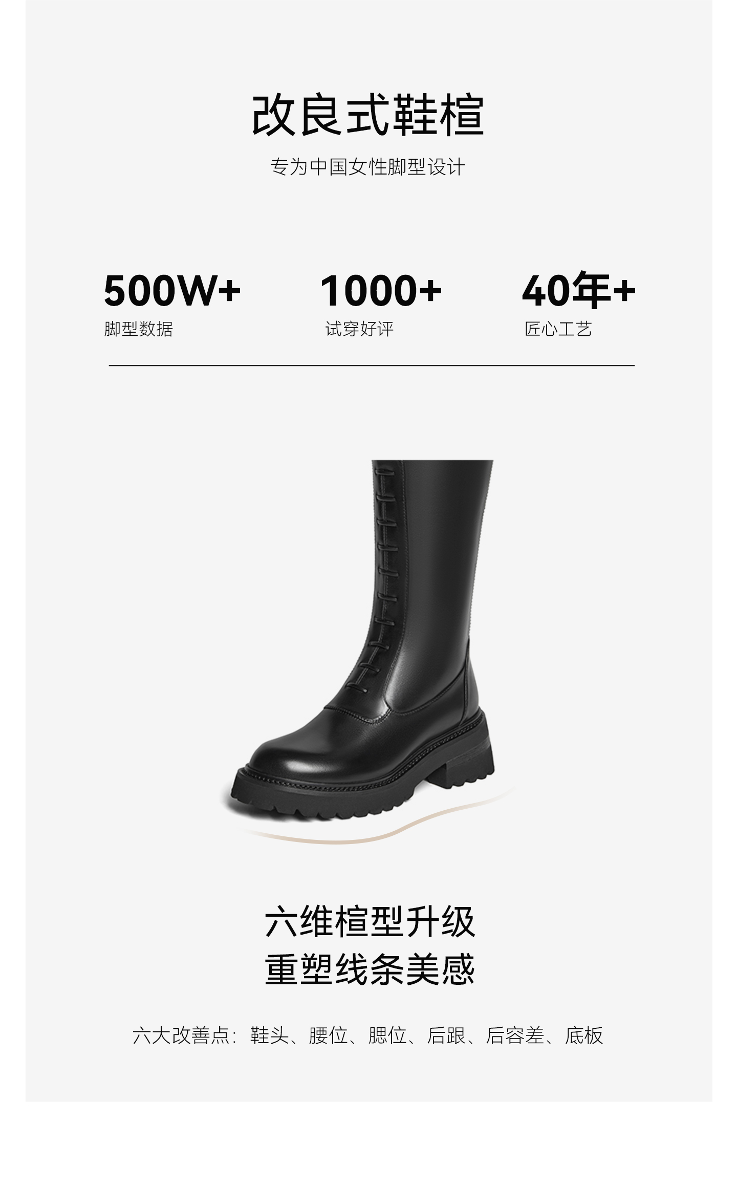 | 鞋底材质:橡胶发泡底 | 靴筒内里材质:猪皮革 | 内增高:无 | 鞋面材质:牛皮革 | 闭合方式:后拉链 |