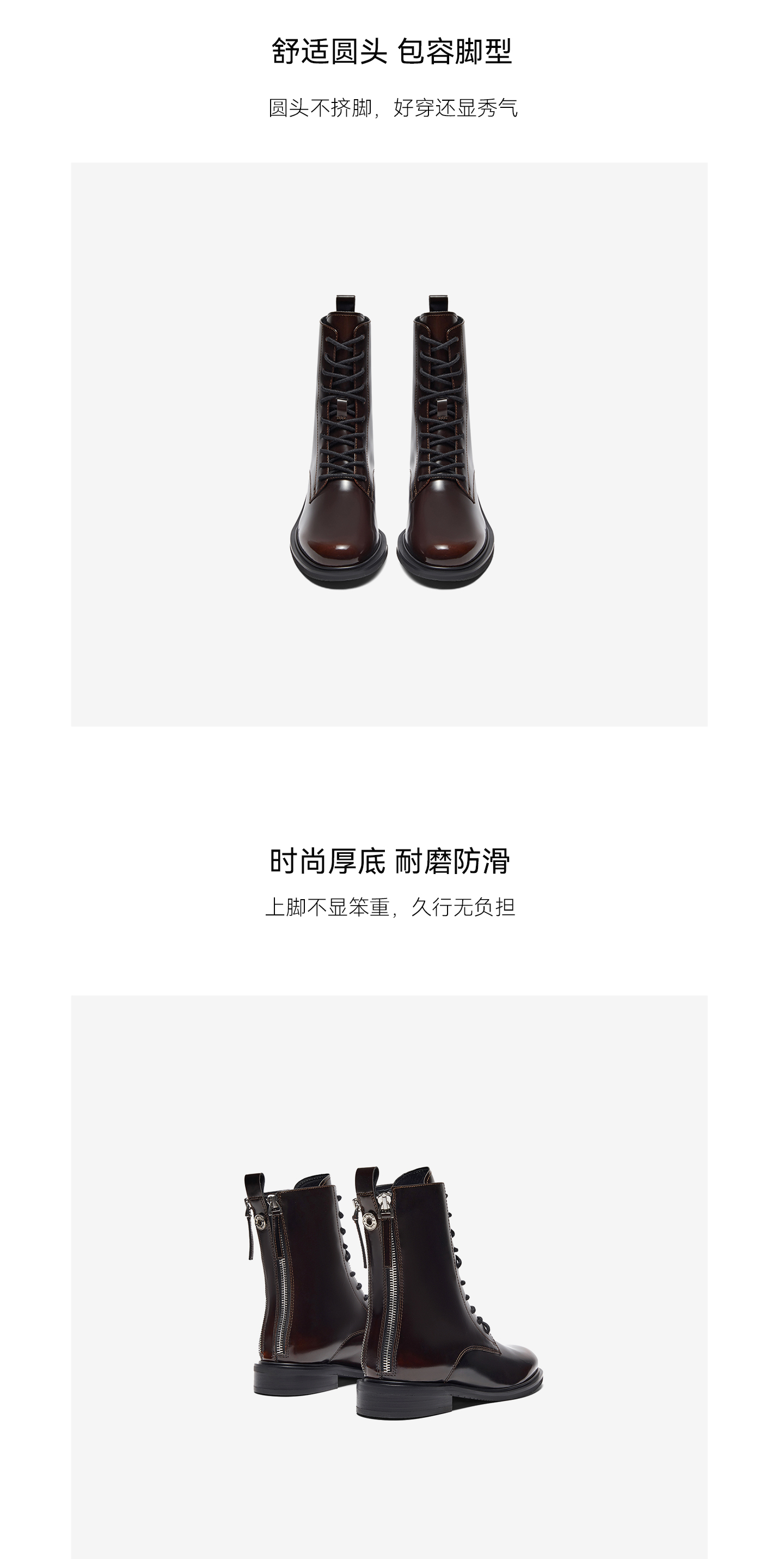 | 鞋底材质:橡胶底 | 靴筒内里材质:绒布 | 内增高:无 | 鞋面材质:牛皮革 | 闭合方式:后拉链 |