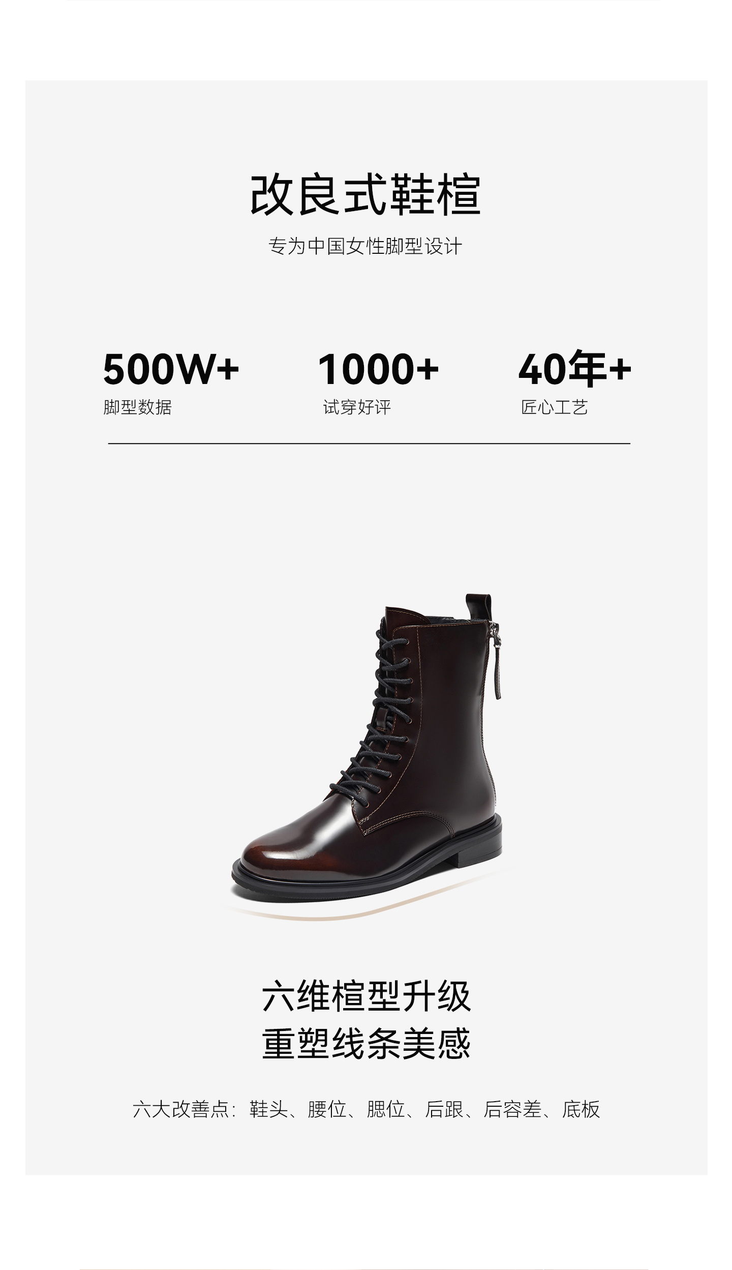 | 鞋底材质:橡胶底 | 靴筒内里材质:猪皮革 | 内增高:无 | 鞋面材质:牛皮革 | 闭合方式:后拉链 |