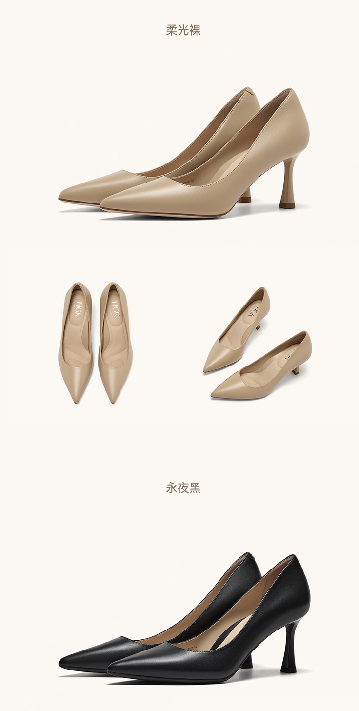 | 鞋头款式:尖头 | 鞋底材质:橡胶底 | 鞋面图案:纯色 | 鞋跟形状:细跟 | 鞋面材质:羊皮革 |