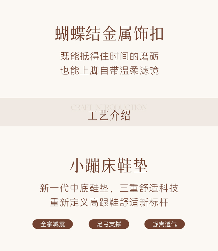 | 流行元素:蝴蝶结 | 参考鞋长(女):24.5CM | 参考鞋宽(女):8CM | 风格:简约OL通勤 | 色系:杏色 |