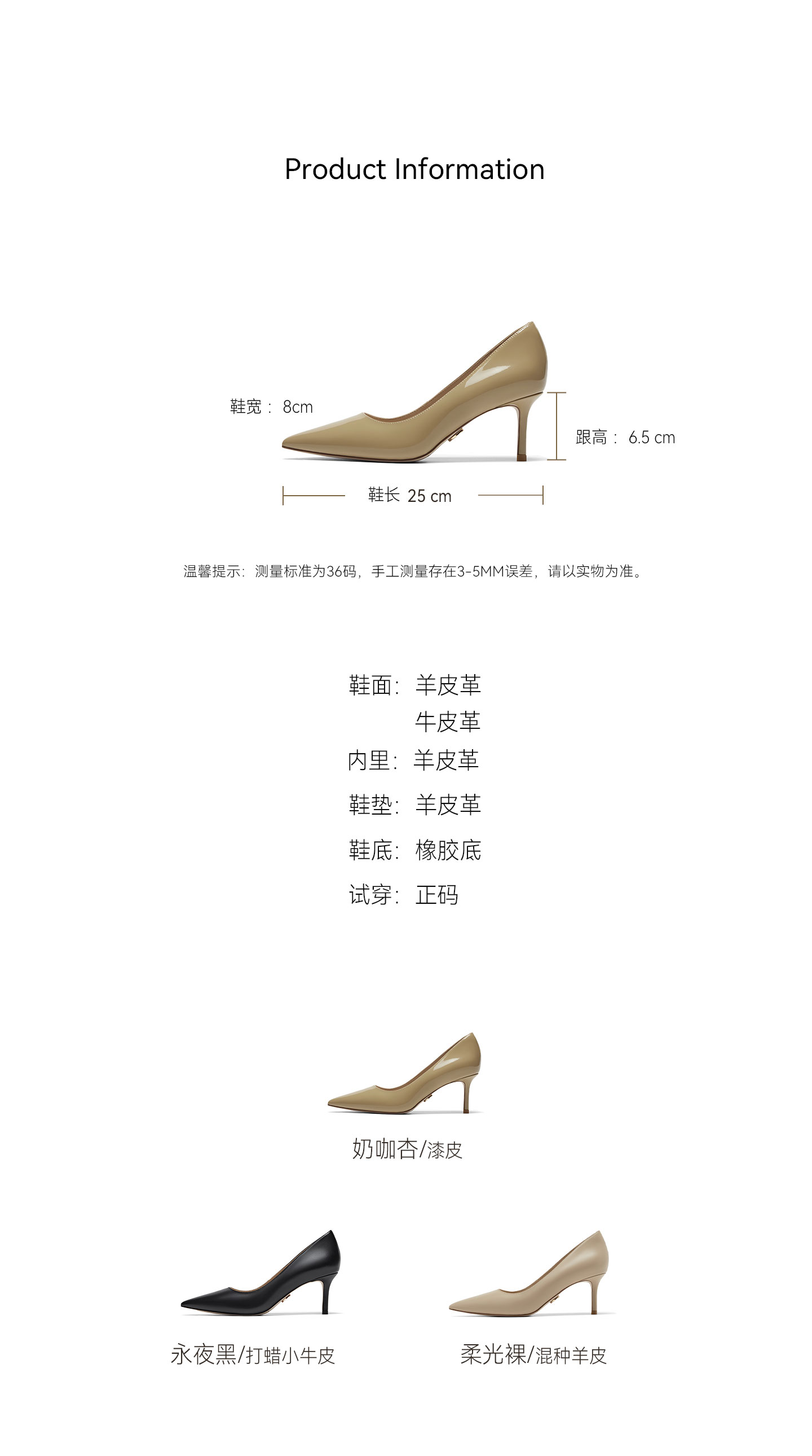| 色系:浅杏 | 跟高数值:6.5CM | 适用人群:女子 | 配跟:无 | 性别:女子 |