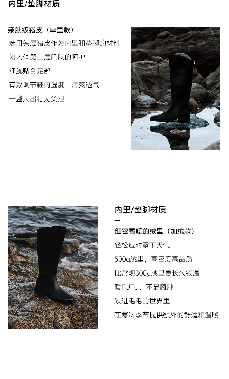 | 鞋底材质:橡胶底 | 靴筒内里材质:猪皮革 | 内增高:无 | 鞋面材质:牛皮革 | 闭合方式:后拉链 |