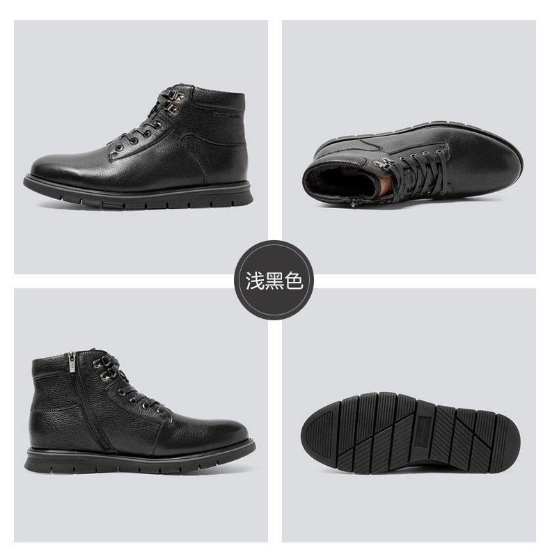 | 筒高数值:12CM | 性别:男子 | 靴筒筒面材质:牛皮革 | 里料材质:羊毛 | 制鞋工艺:胶贴皮鞋 |