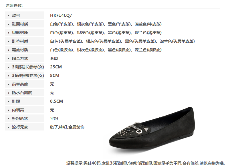 | 色系:黑色 | 鞋跟:0.5CM | 鞋头:尖头 | 配跟:无 | 性别:女子 |