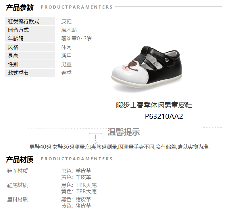 | 色系:黑色 | 鞋头:圆头 | 性别:男童 | 里料材质:猪皮革 | 上市时间:2022年春季 |