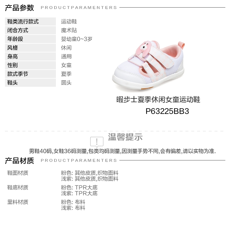 | 鞋底材质:TPR大底 | 鞋面图案:拼色 | 鞋跟形状:平跟 | 鞋面材质:织物面料其他皮质 | 年龄段:婴幼童0~3岁 |