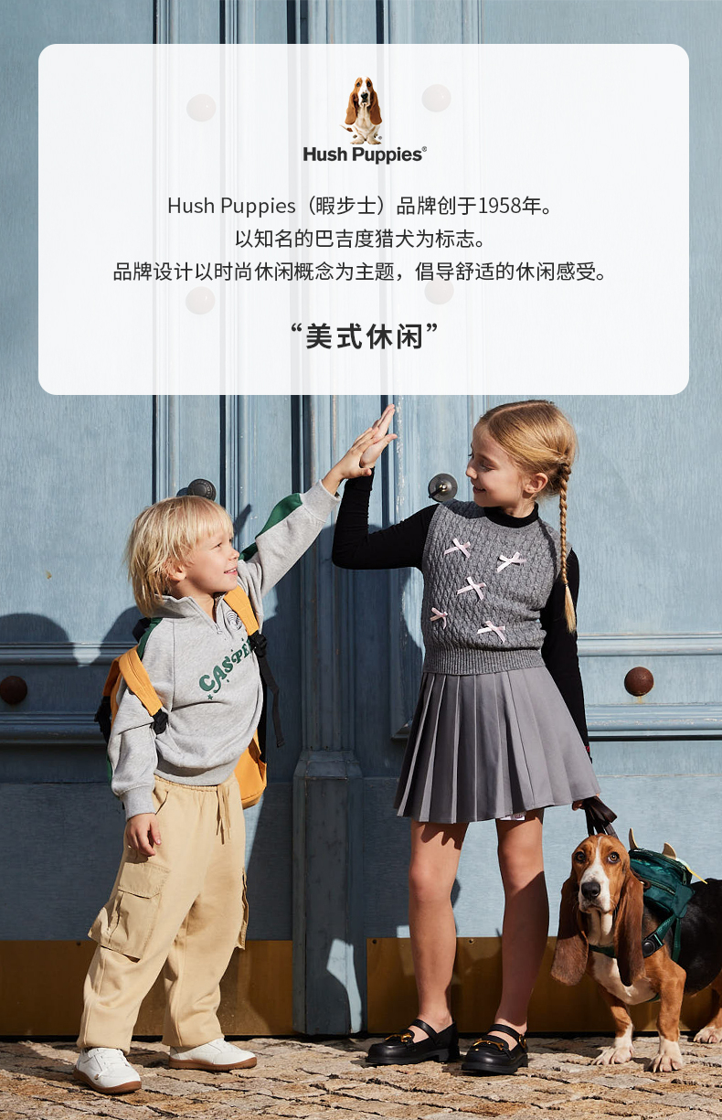 Hush Puppies(暇步士),品牌创立于1958年,以巴吉度猎犬为标志。品牌设计理念以时尚休闲为主,倡导舒适的休闲感受。其不断革新的科技工艺,令鞋品舒适耐穿,树立了令人喜爱的休闲品牌形象。舒适材质与内里,营造舒畅自在的穿着空间,尽情释放随性不羁的年轻姿态;以时尚简约的款型,性感干练的女性特质,搭配舒适粗跟设计,时尚美观给予舒适体验;时尚新潮的设计,配以清新炫目色泽,带来耳目一新的时尚魅力!