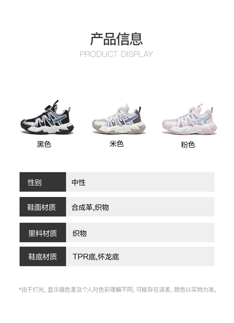 | 鞋底材质:TPR底怀龙底 | 鞋面材质:织物合成革 | 年龄段:中童6~12岁 | 流行元素:撞色 | 闭合方式:套脚 |