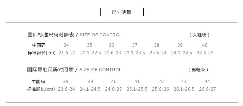 | 法国码 | 38 | 39 | 40 | 41 | 42 | 43 | 44 |