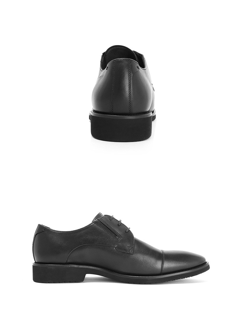 | 鞋面材质:牛皮革 | 流行元素:车缝线纯色素面 | 闭合方式:套脚系带 | 风格:商务 | 色系:黑色 |